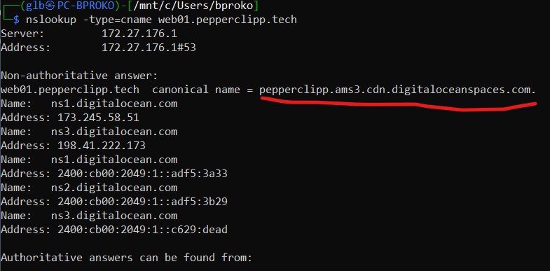 Then, just query CNAME DNS Record to get the space name and region. This can also help on Subdomain Takeover attacks.